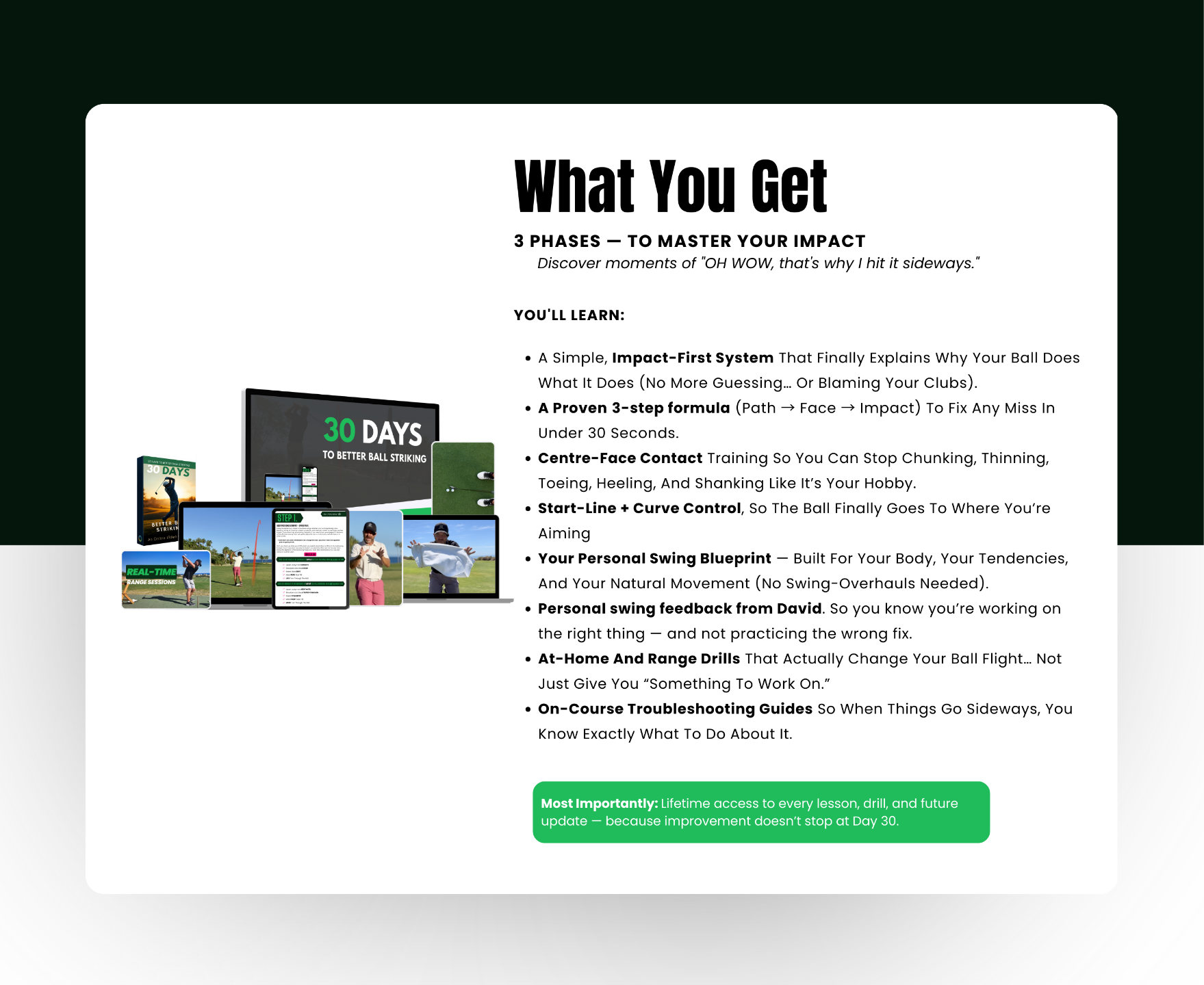 Here’s what you’ll learn inside 30 Days to Better Ball Striking: